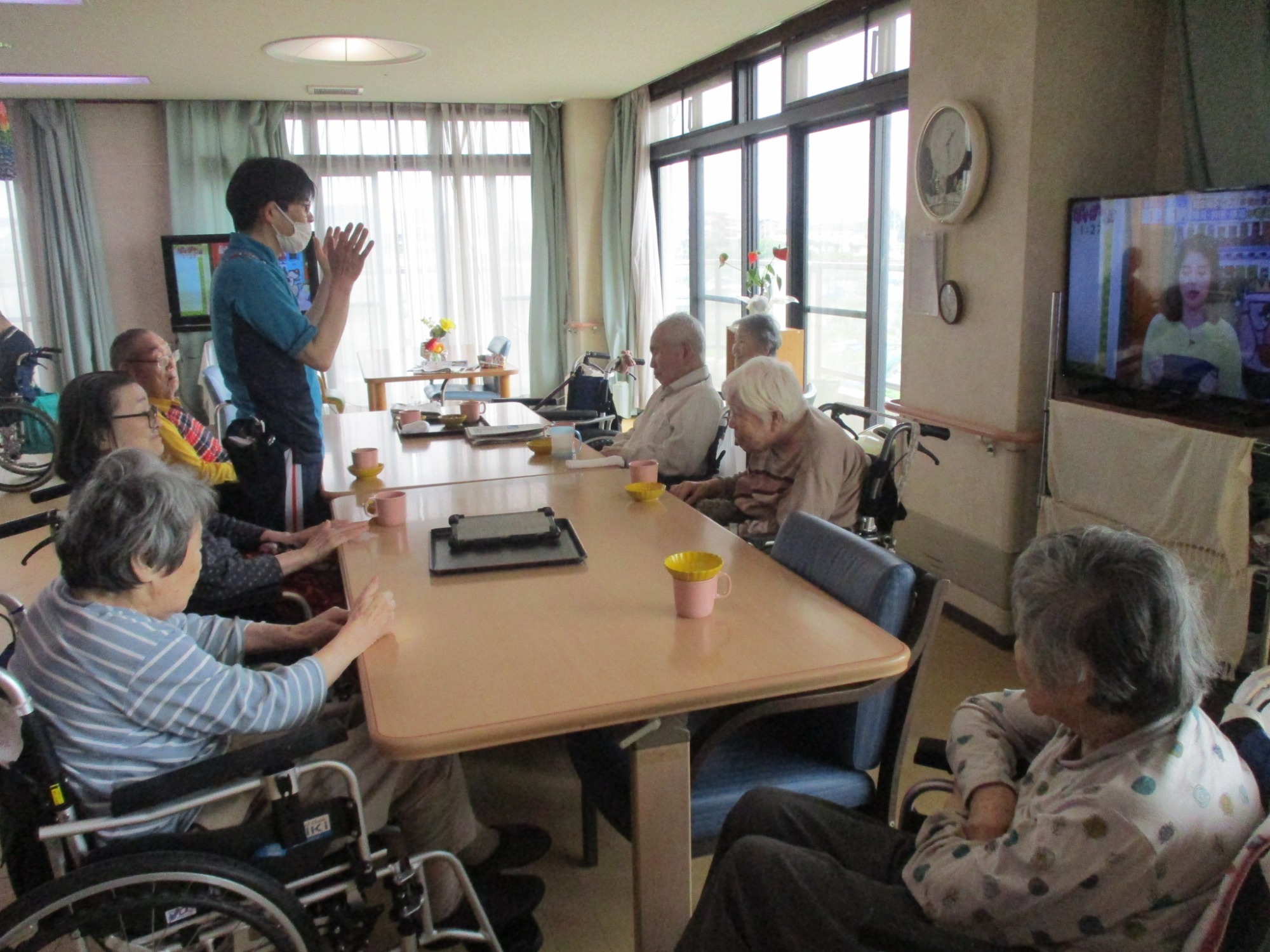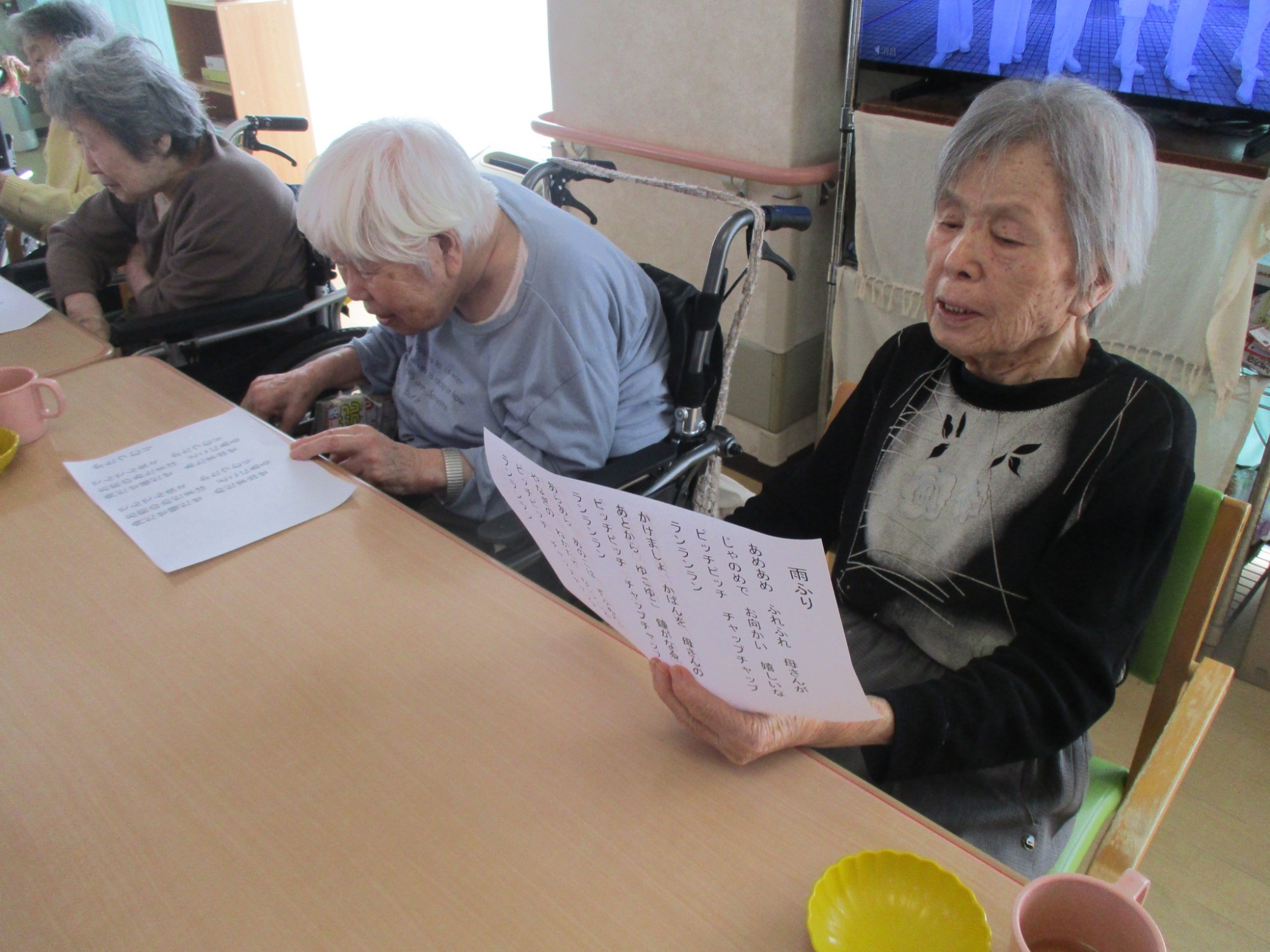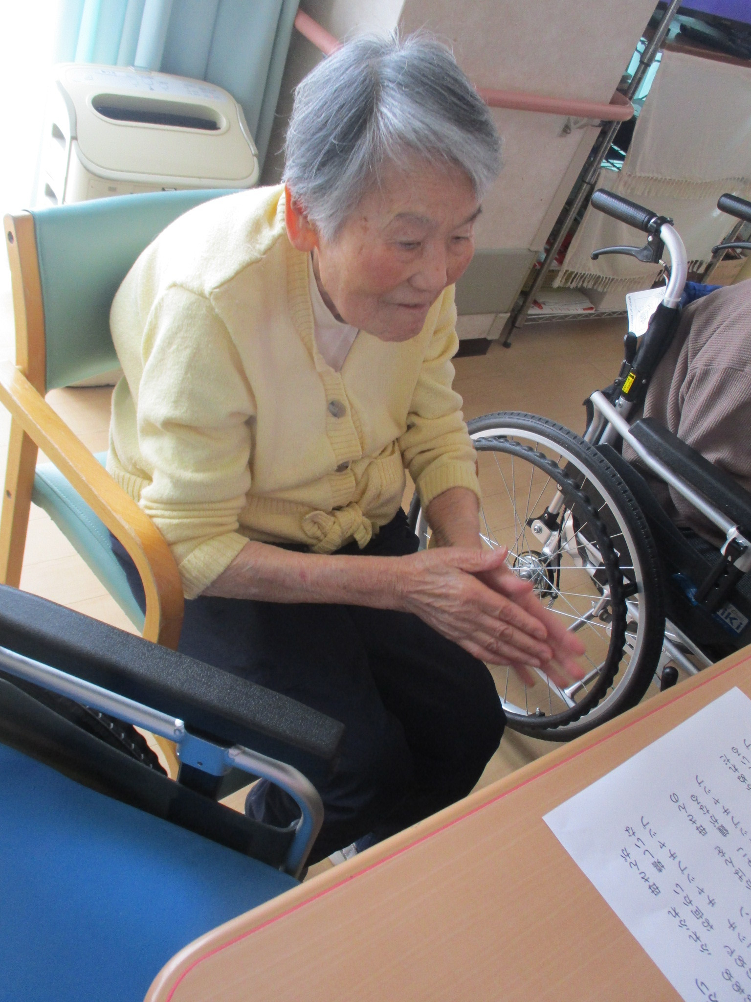 手拍子をしたりしながら午後の時間に皆さんと一緒に歌をうたって楽しみました。