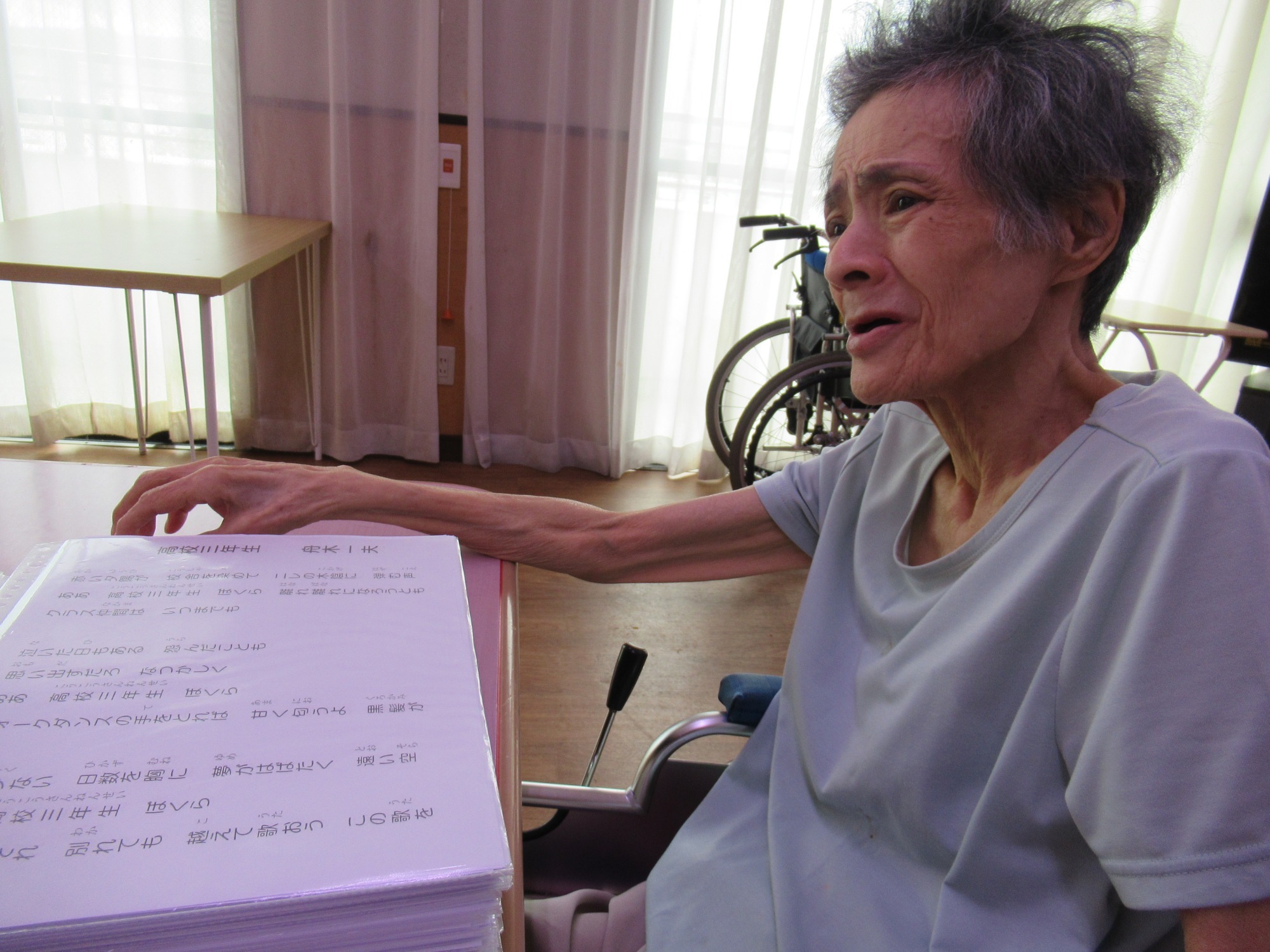 歌が好きな入居者様に、歌手の写真や歌詞プリントを入れたファイルを準備しました。