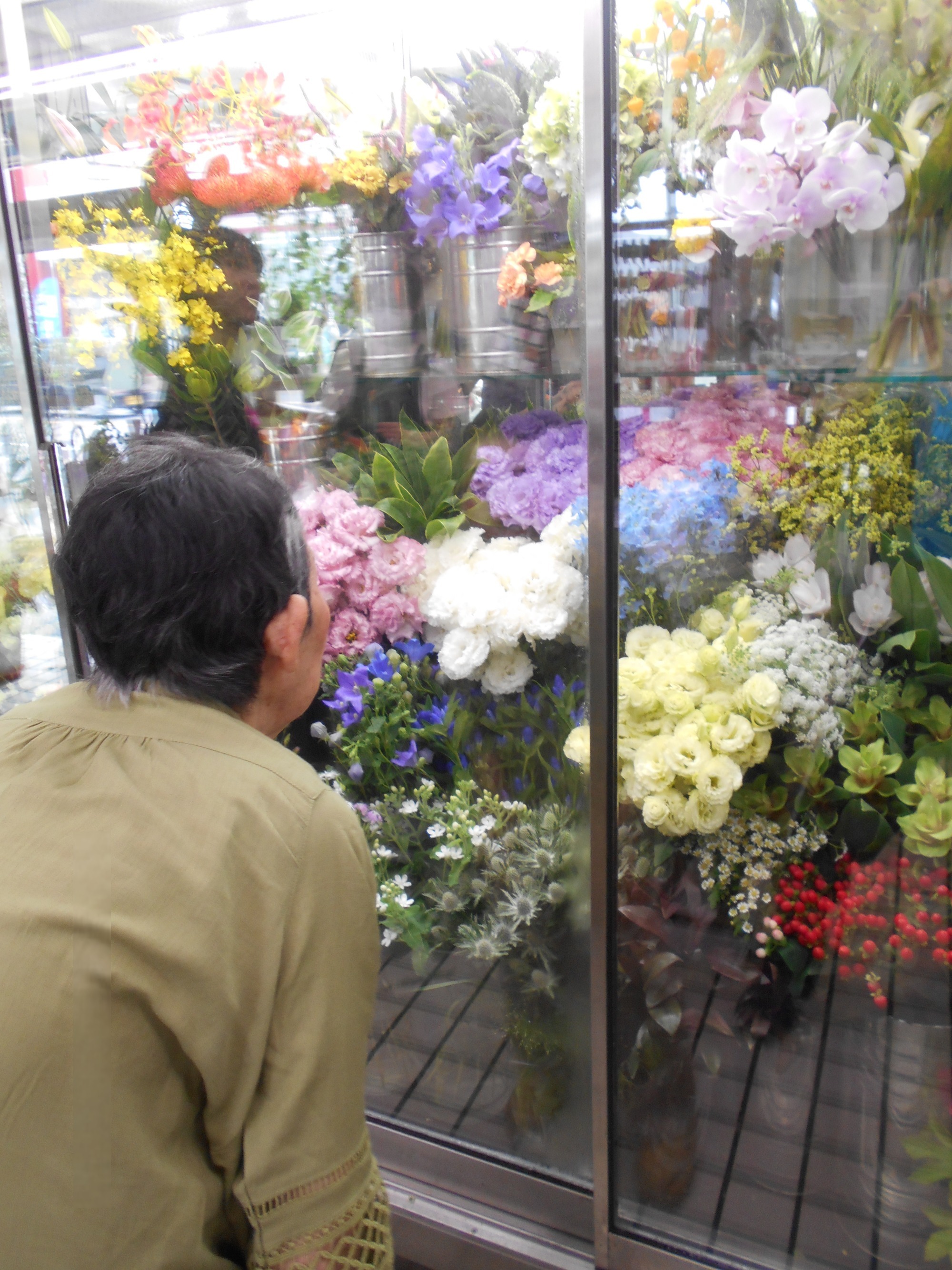 花屋さんでは、色とりどりのお花を前に「きれいね」を感心され、店員さんとの会話も楽しそうにされていました。