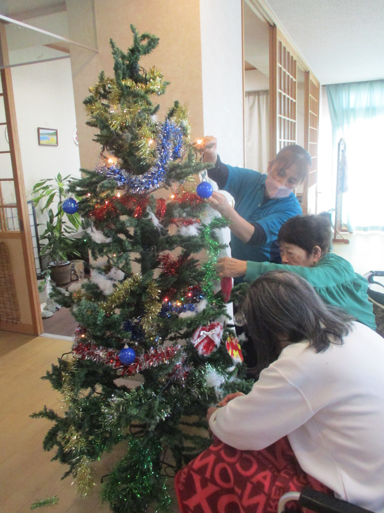 クリスマスって準備もワクワクして楽しいですね。皆様ツリーを見ると「綺麗~」と好評で自然と笑顔になっております。