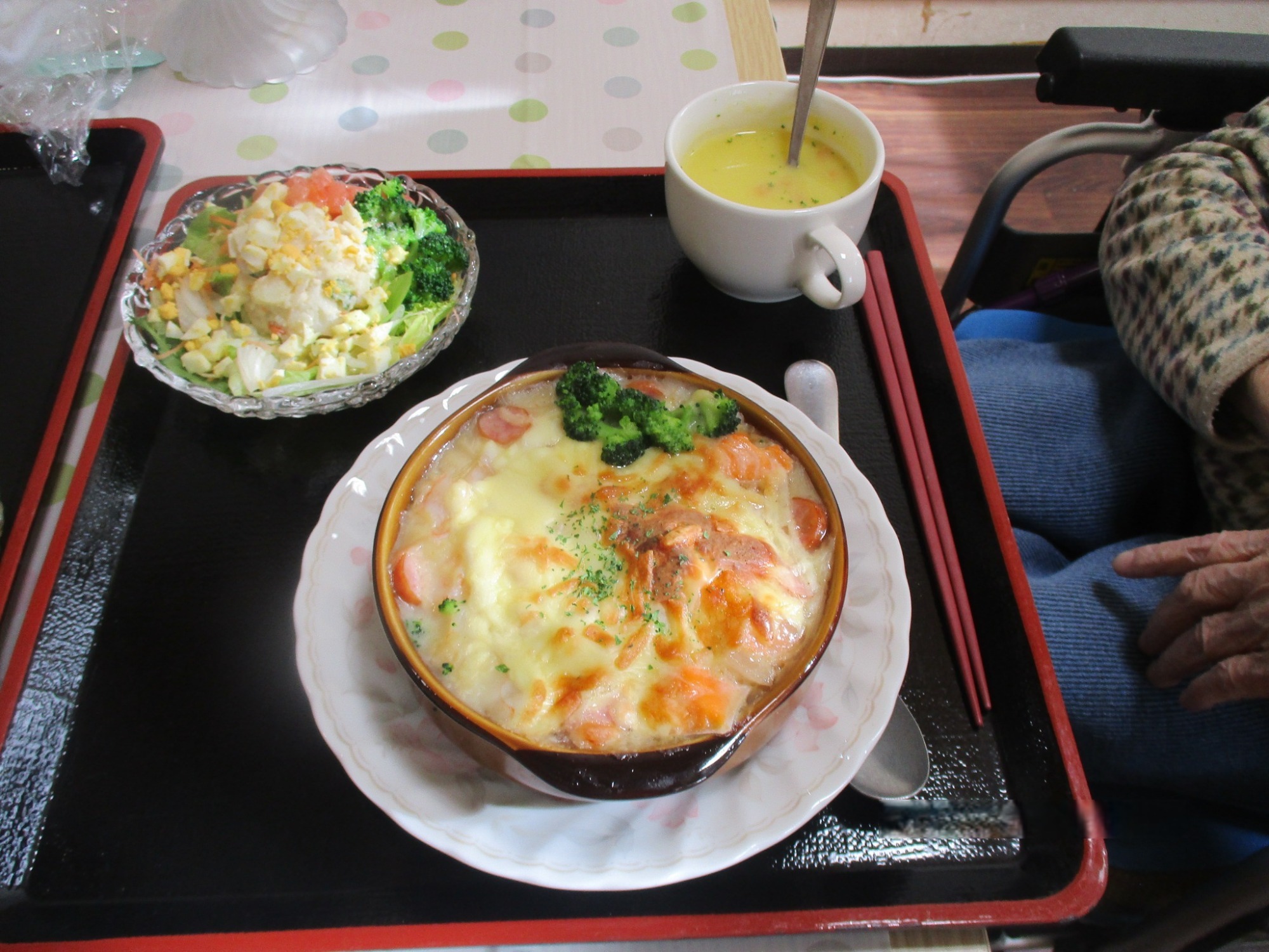 日頃とは少し違ったメニューで入居者様も「わぁ~!きれい!」と喜んで頂きました。