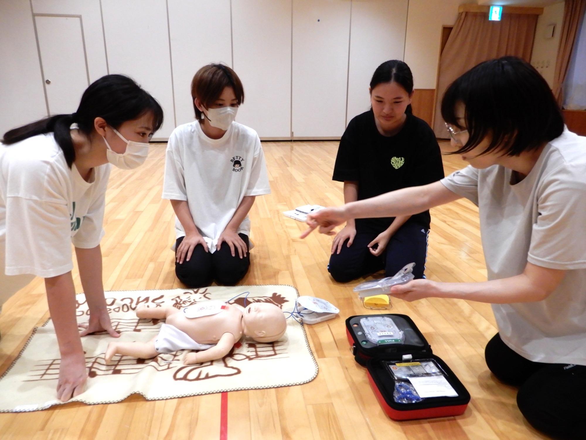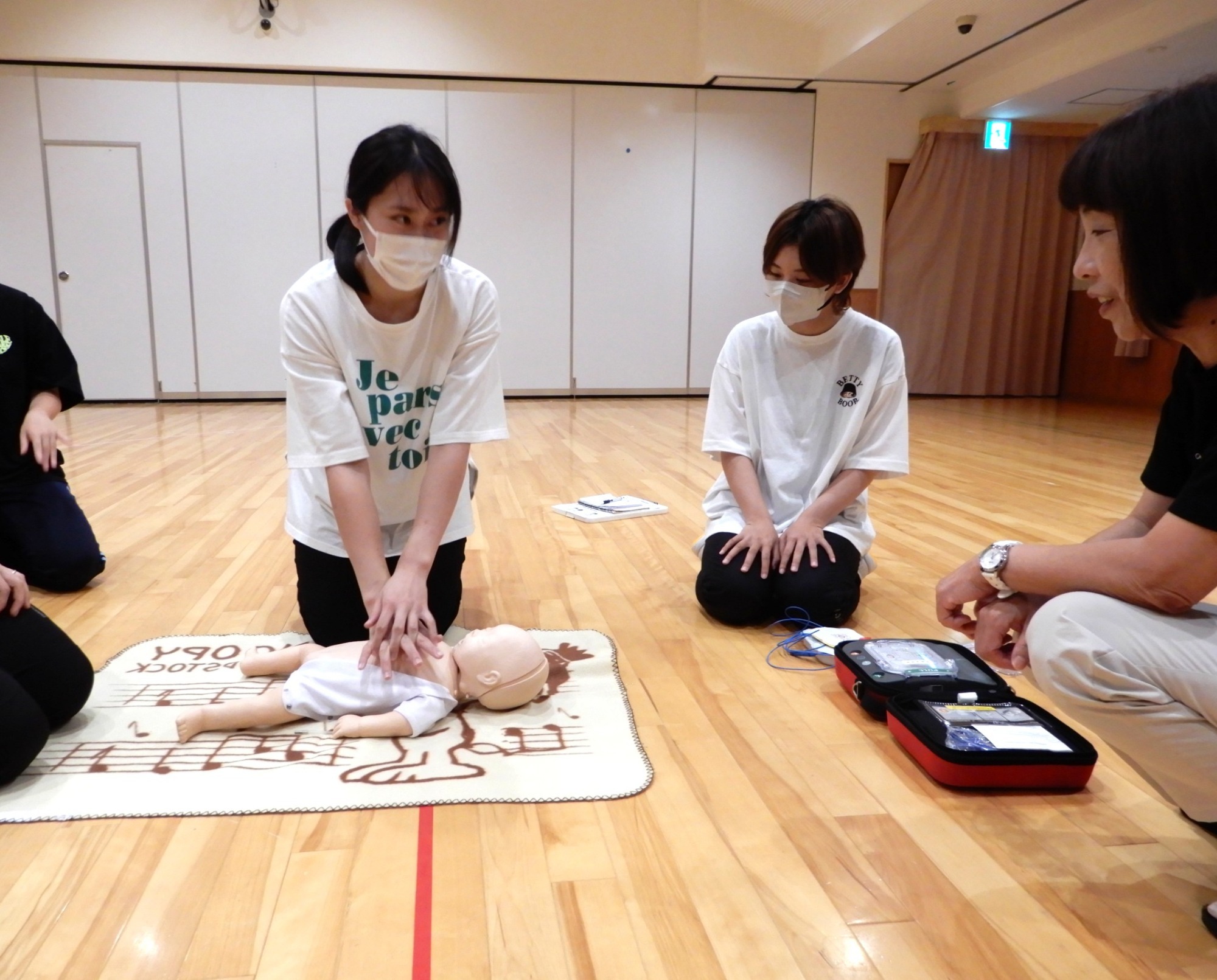 春から新入職の3人にもAED、心肺蘇生の実践にも取り組んでもらいました⛑️