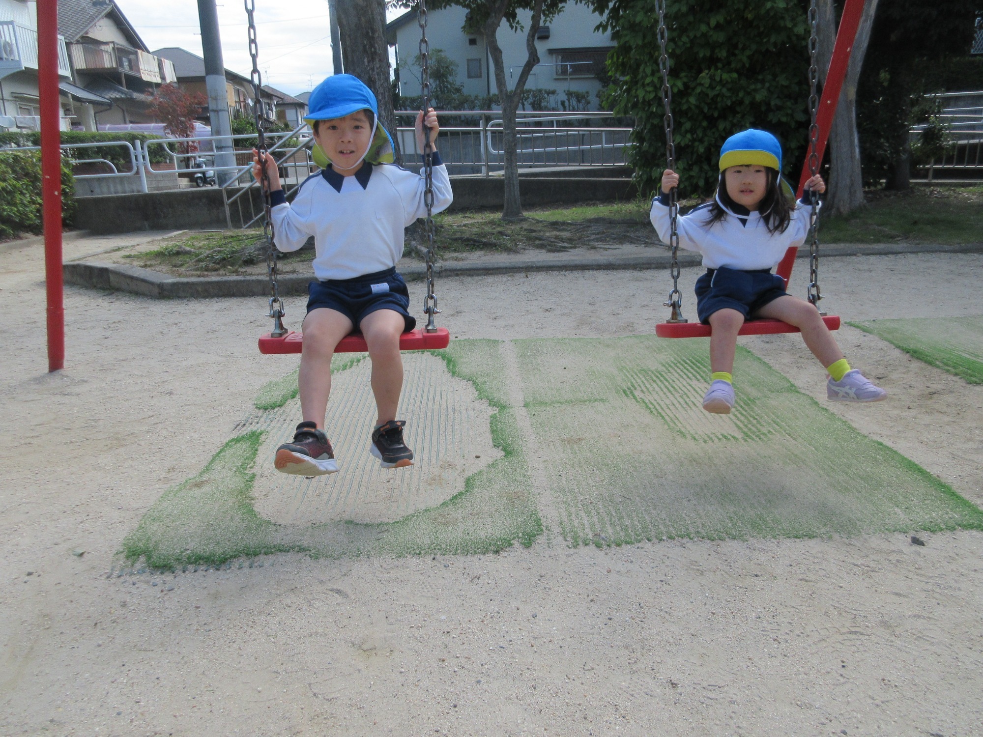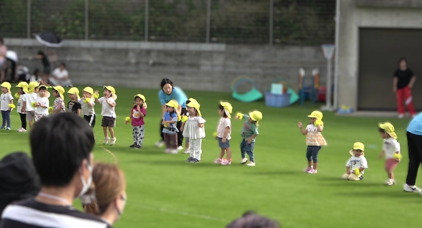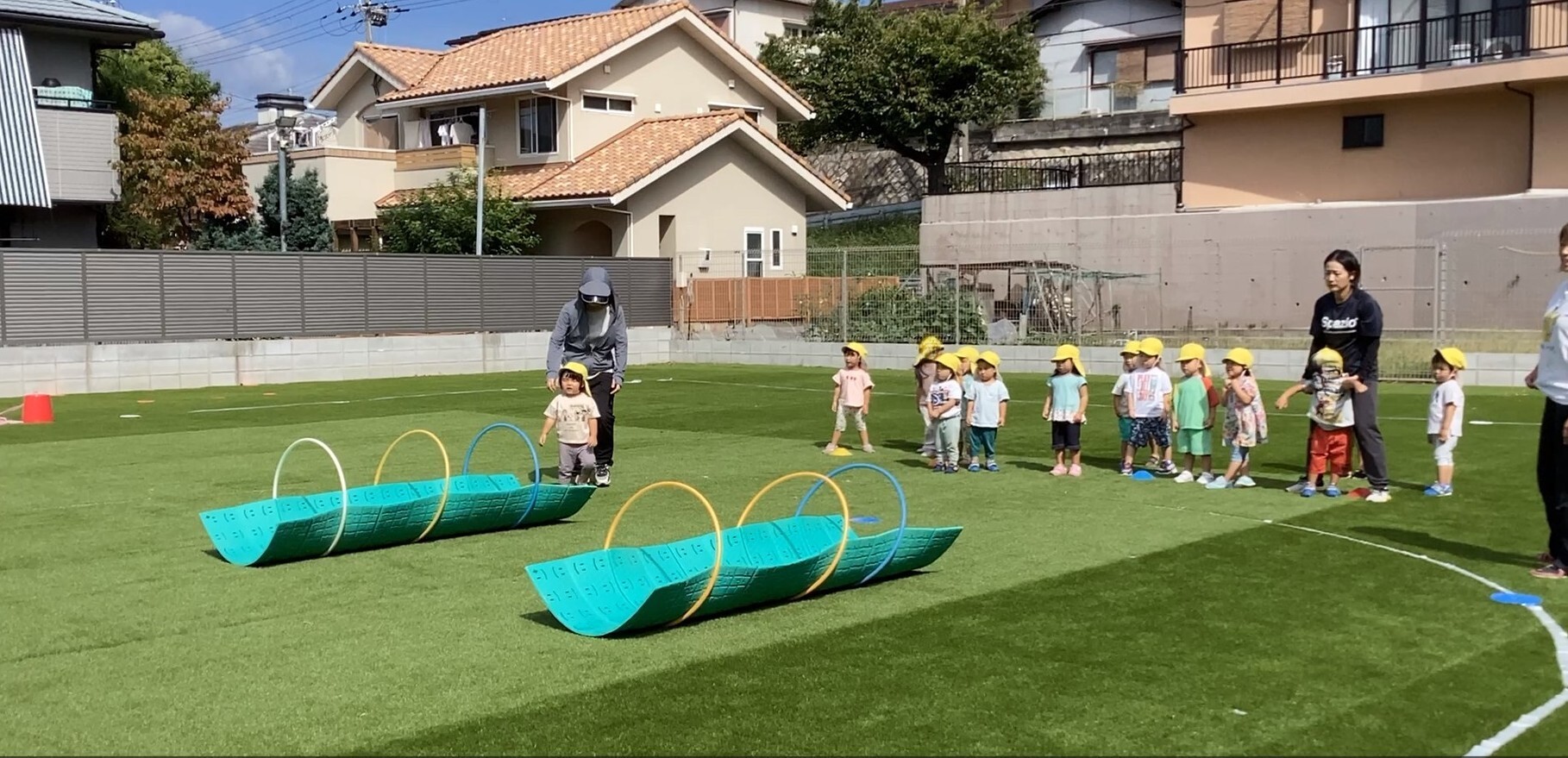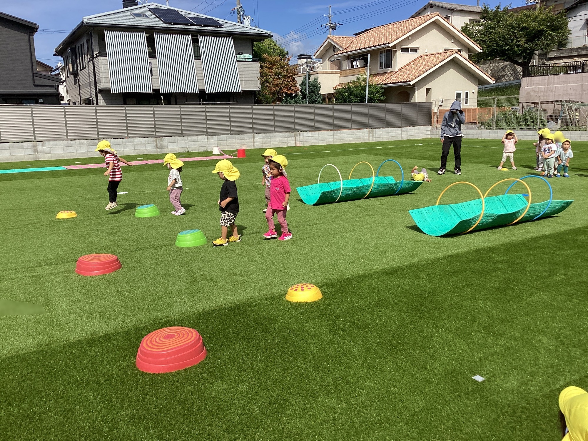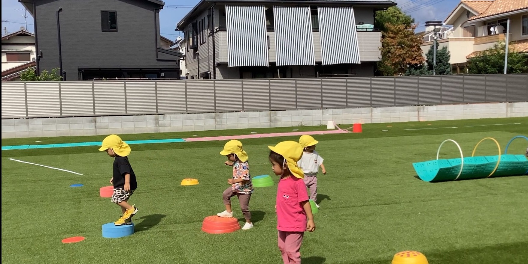 マツガ保育園では、6月より広場が人口芝にリニューアルされました✨