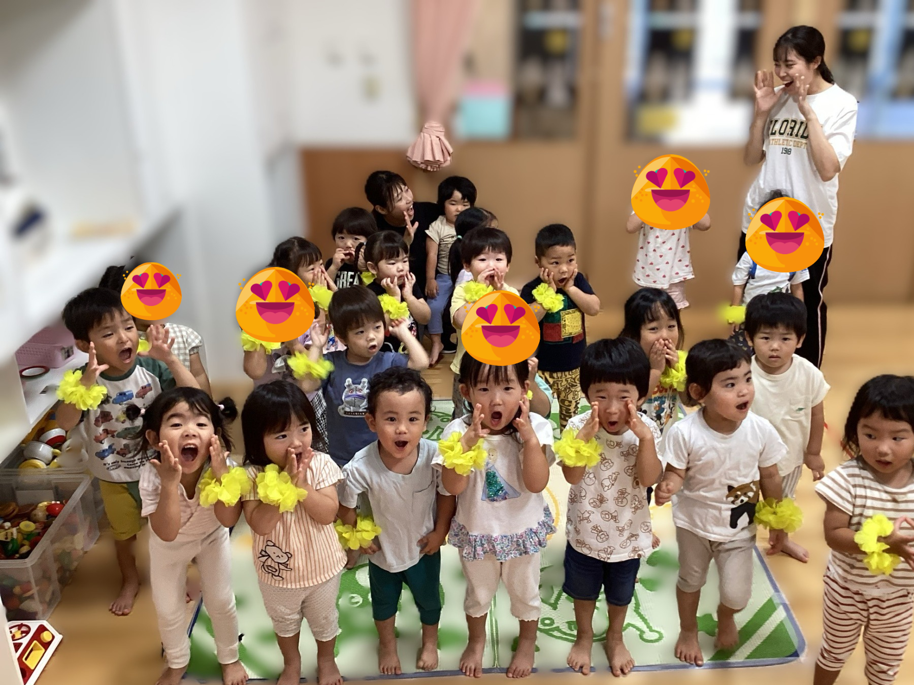 沢山遊んで「お片付けよー」と伝えると遊び足りないのか毎日大ブーイングが起こるほど