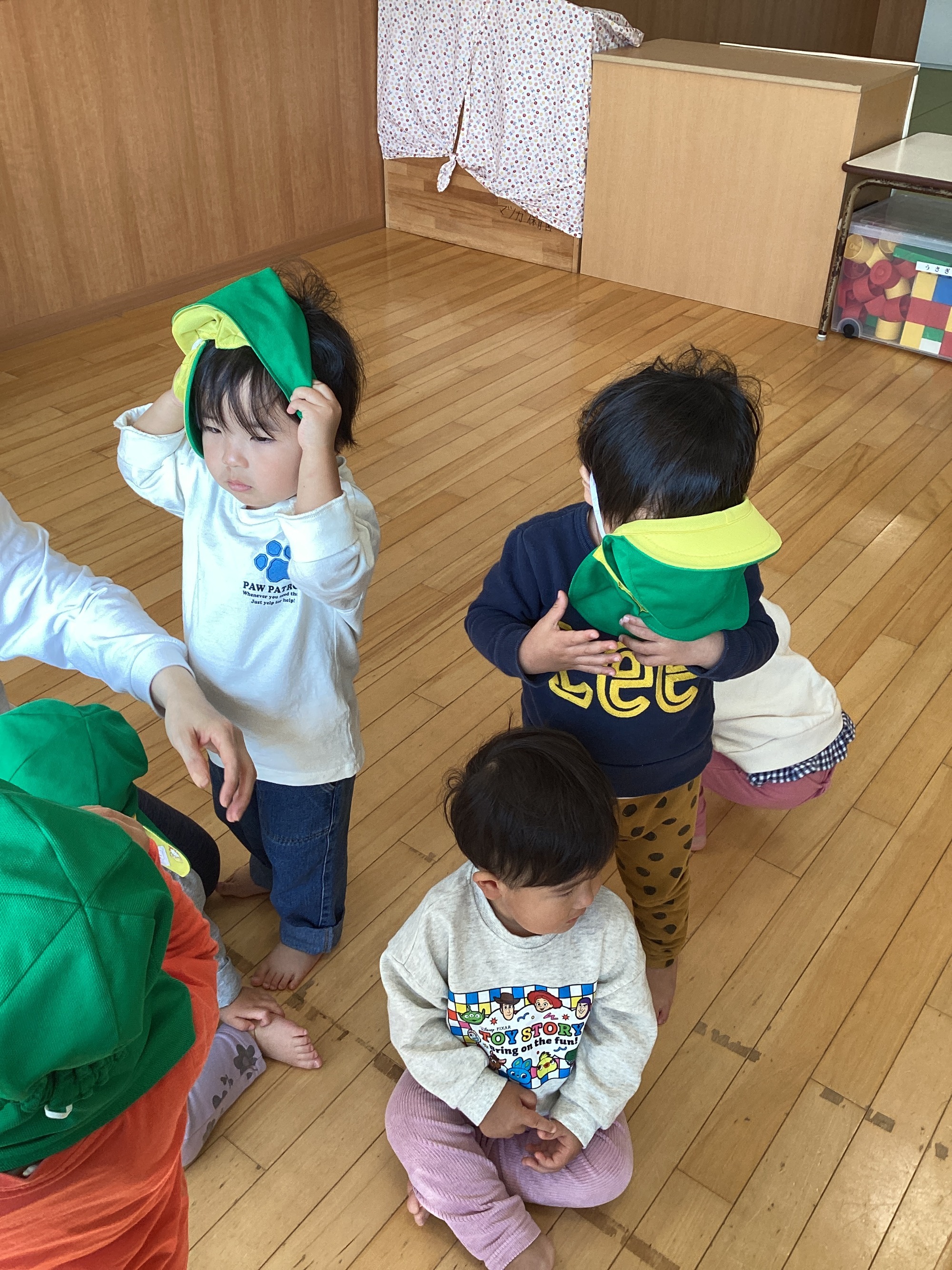 今のお気に入りは「南の島のハメハメハ大王」。何回か繰り返し歌っているうちに、自由遊びの最中にも♪ハメハメハメハメハ~♪と口ずさむお友だちもいるぐらいお気に入りになったようです。
