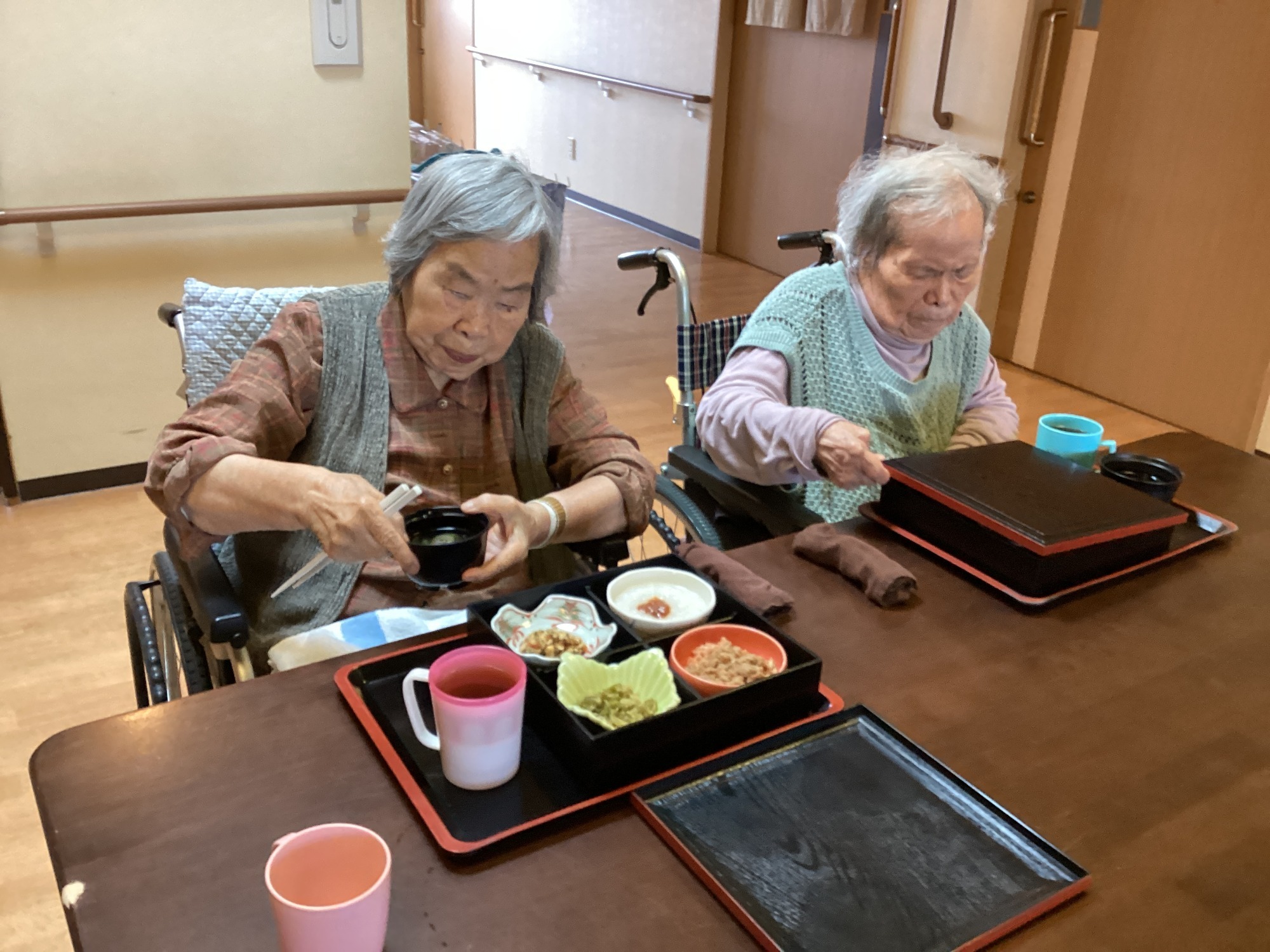 「そうか、そうか。正月やったか」と、言われる入居者様もおられましたが、いつもとは違う雰囲気を感じられた様で良かったです。