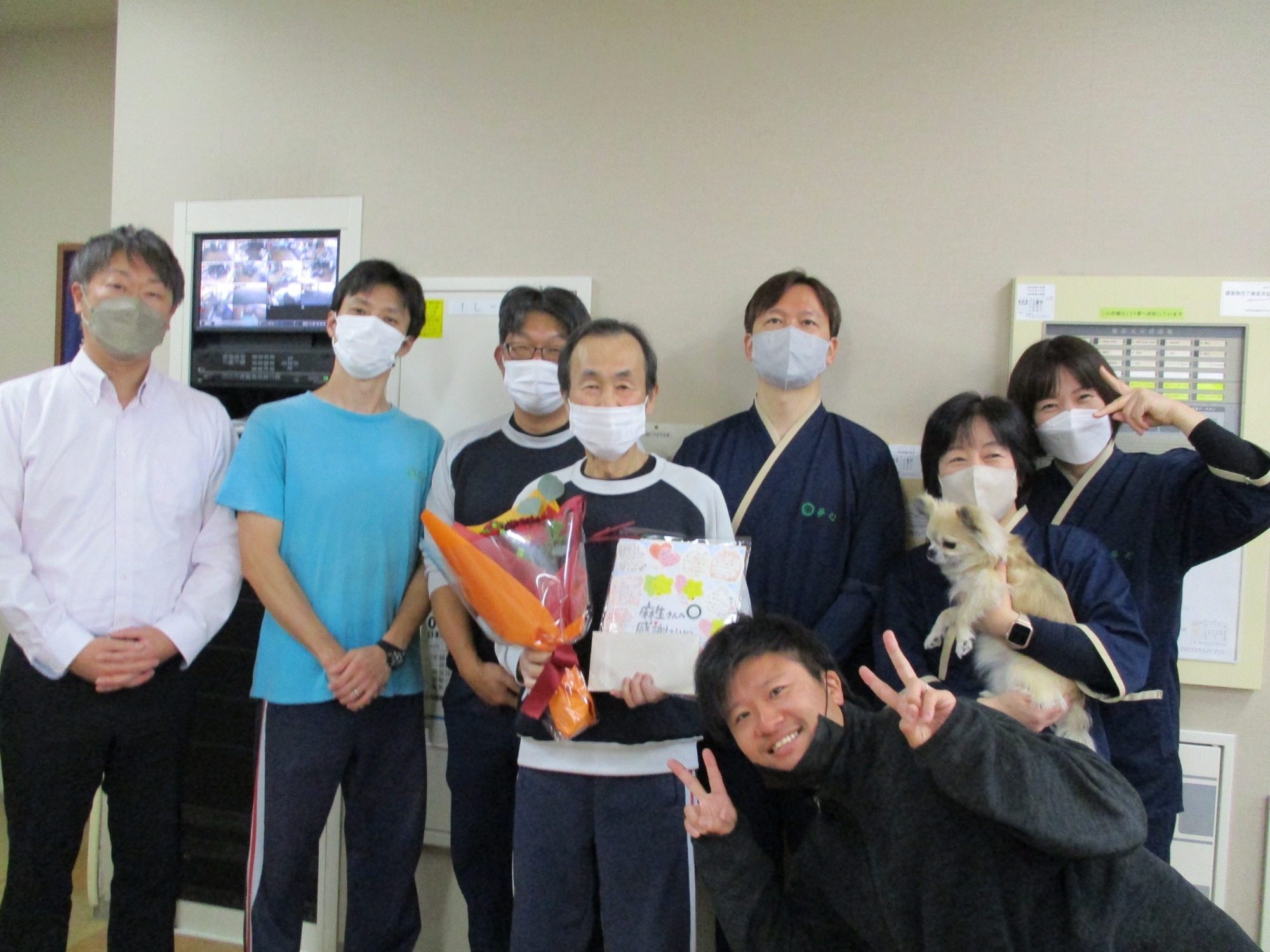 これから朝出勤してきても、事務所に宿直さんの姿が見えないのはとても寂しいですが、お近くにお住まいの方なので是非遊びに来てくださると