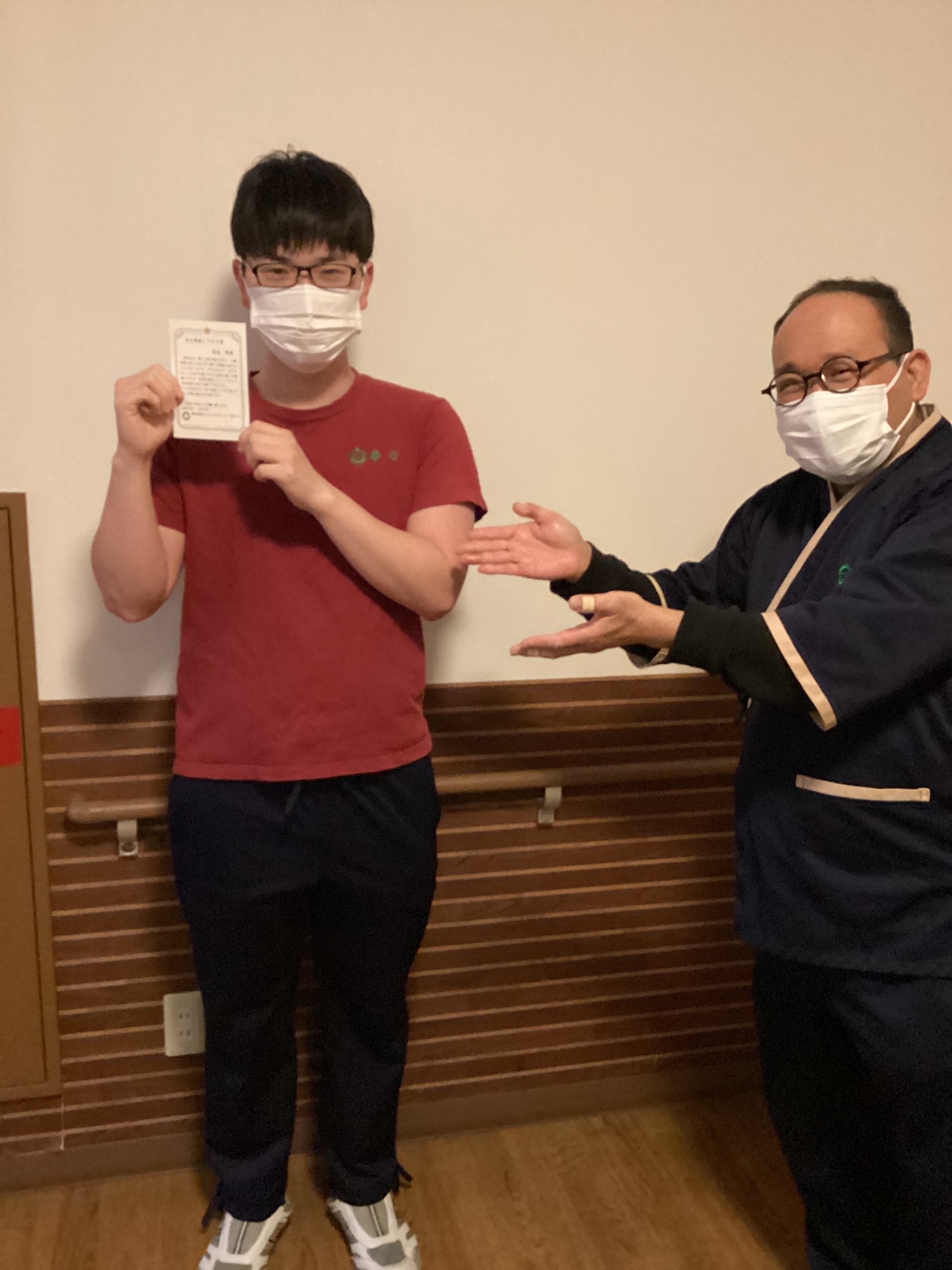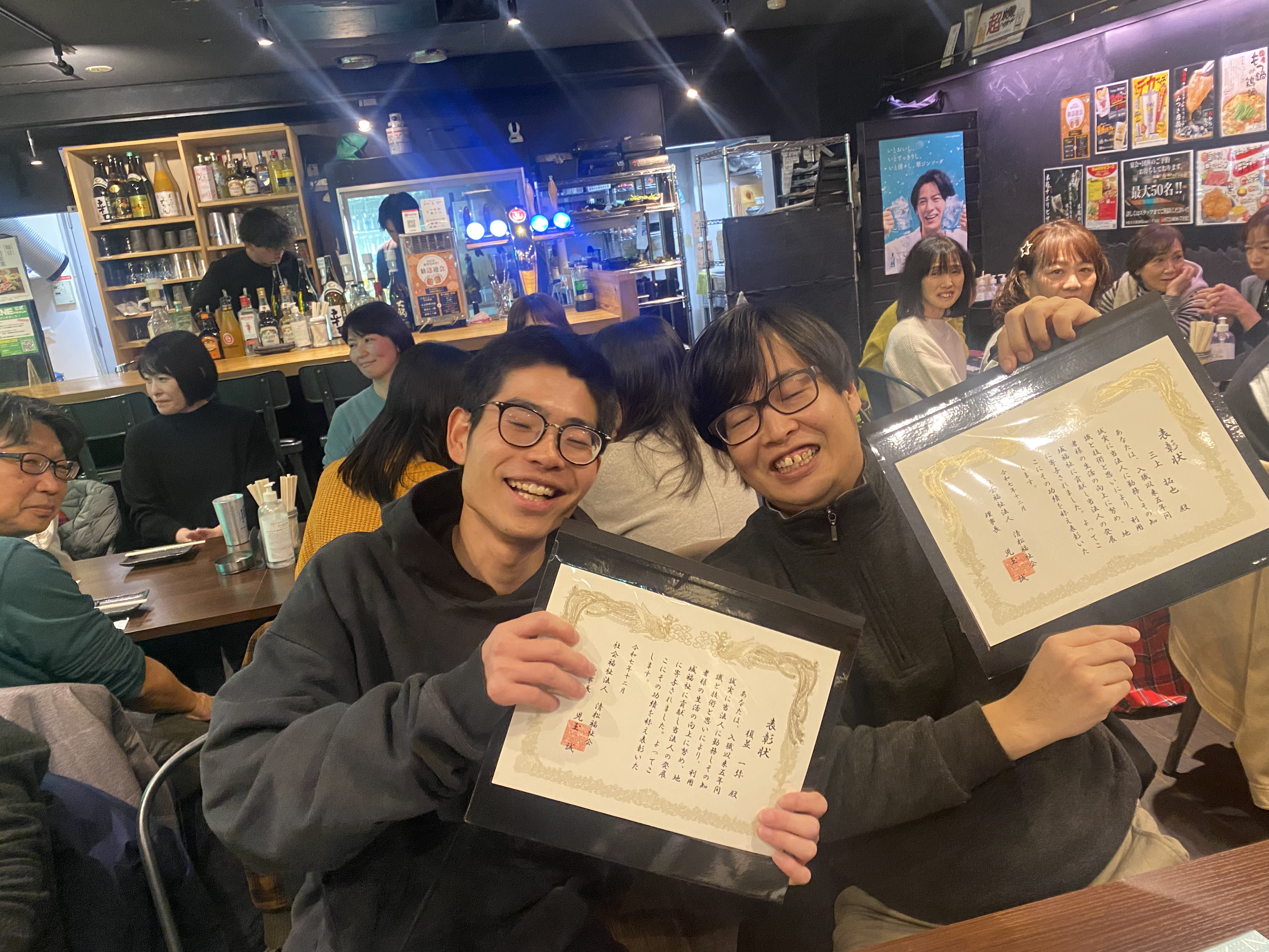 同じユニット職員の先輩からこれからも頑張って欲しいという気持ちを込めてミニ表彰状を作成し直接手渡しました。